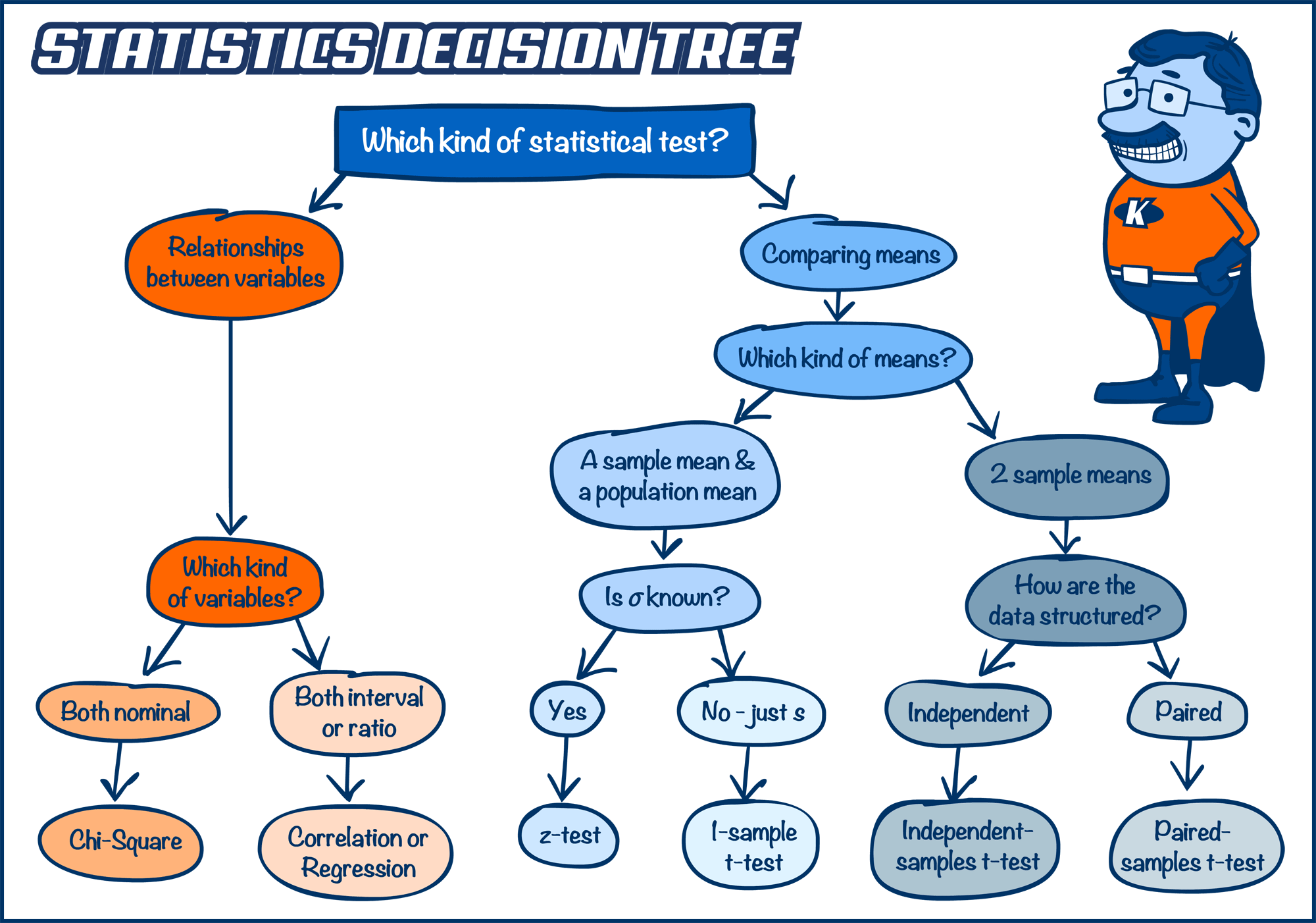 If you are familiar with basic statistical concepts then you can use simple decision trees such as the one illustrated below to help identify the type of test that you need to perform. This chart applies to parametric data, which was explained in the short video above.